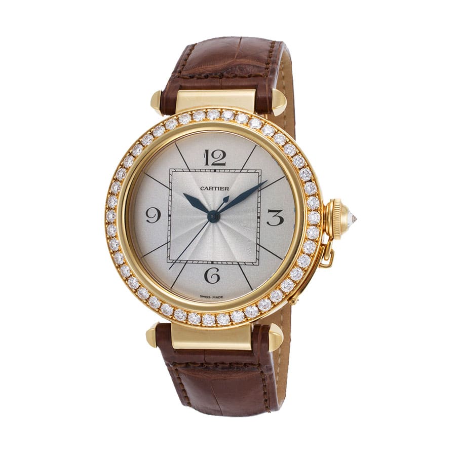 Cartier Pasha Yellow Gold Diamond Brown Leather Replica Watch WJ120351